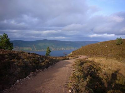 Grid reference for the start of the path on the Loch Ness side is 556291 and the track starts from Whitfefield which is between Dores and Inverfarigaig.